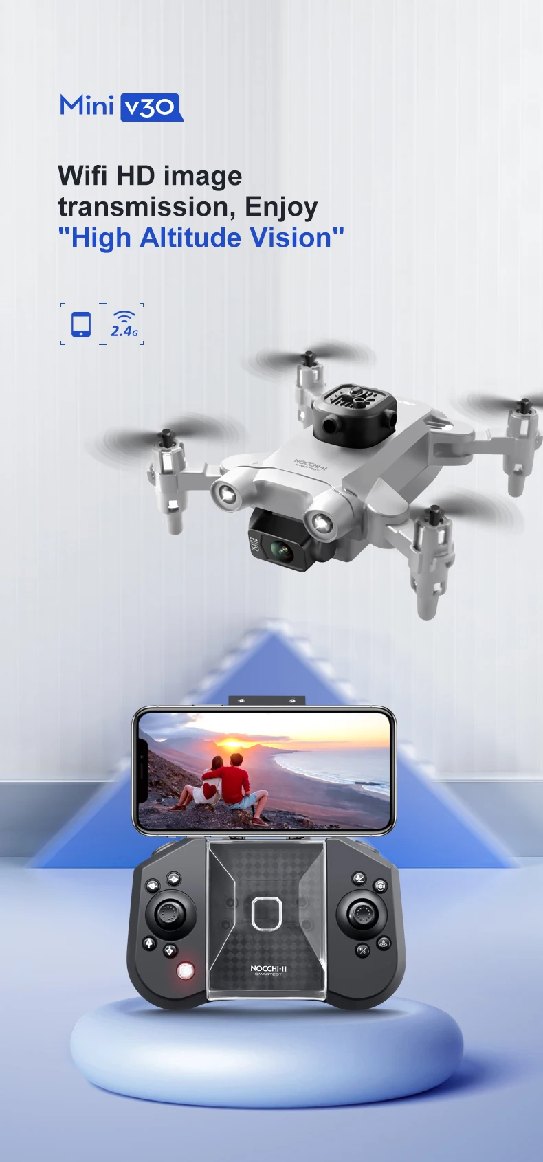 2.Dual camera switching,the bottom lens with optical flow positioning to increase stability and make the picture more stable.