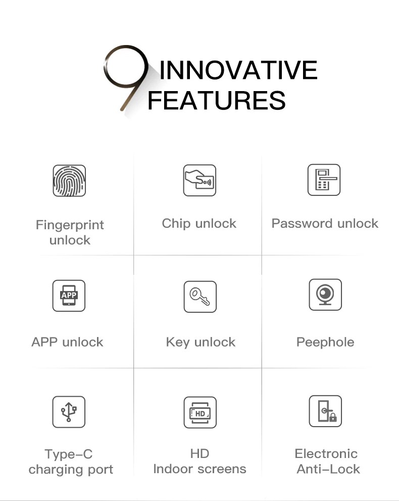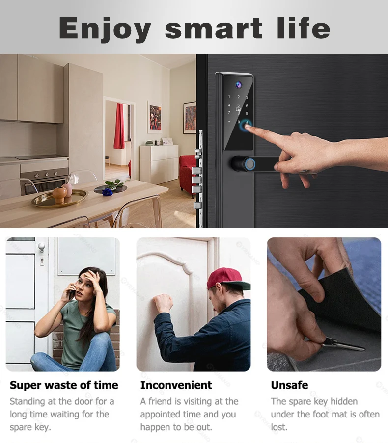 4. Multiple unlocking methods: fingerprint, password, card, mechanical key, TUYA app, and Smart Lock (flexible app switching based on user habits).