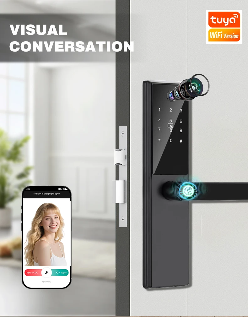 Tuya Wifi Digital Electronic Smart Door Lock with Camera Photo Capture for Residential and Apartment Entrance Doors